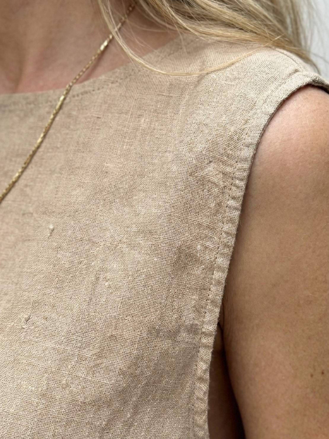 The sleeveless top skims through the body with enough room to move without feeling oversized. The straight-leg pants sit comfortably at the waist with no zips or buttons to deal with. Cotton crinkle texture means you can skip the iron and still look put-together.