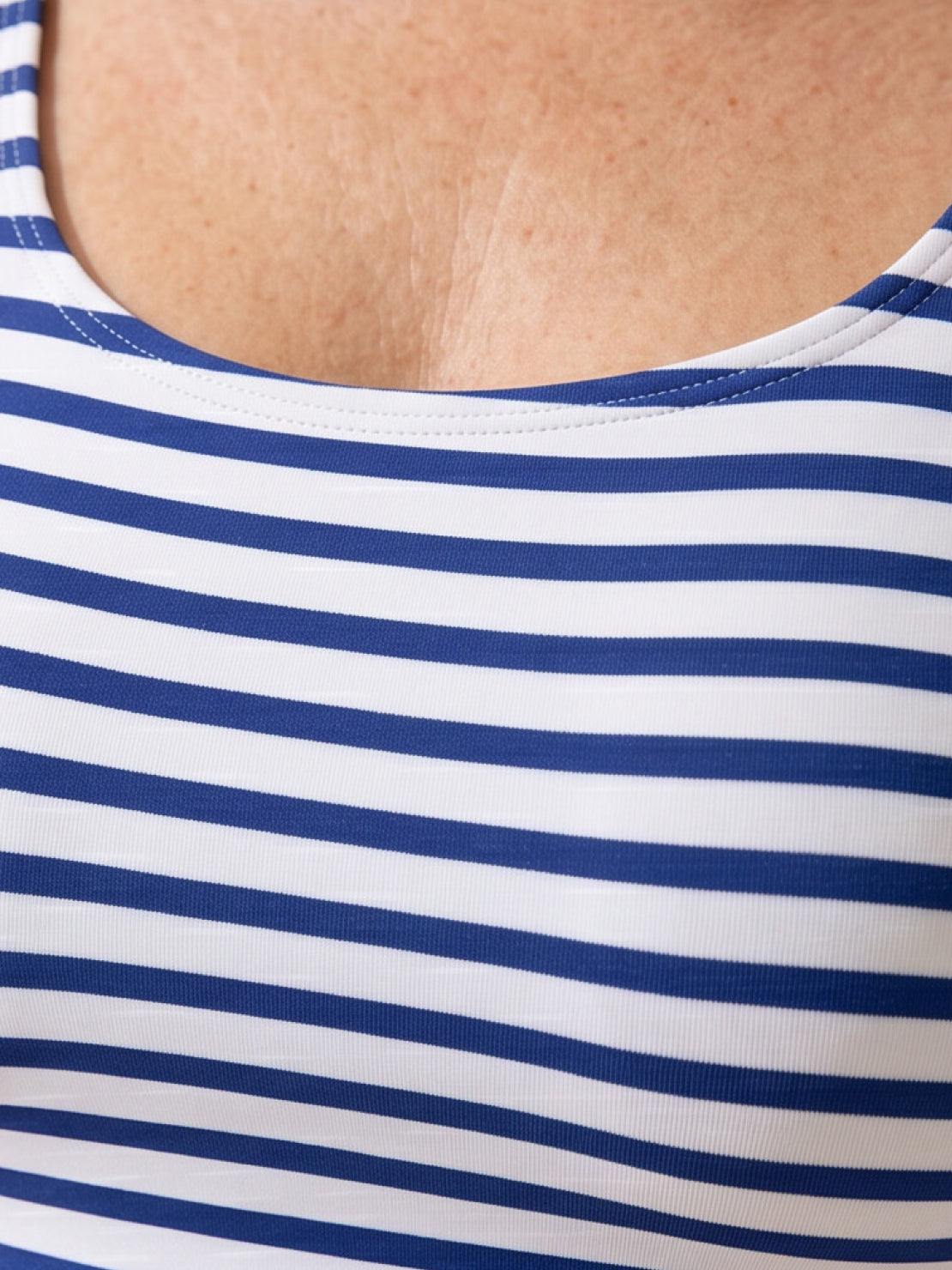 - Scoop neckline, moderate depth